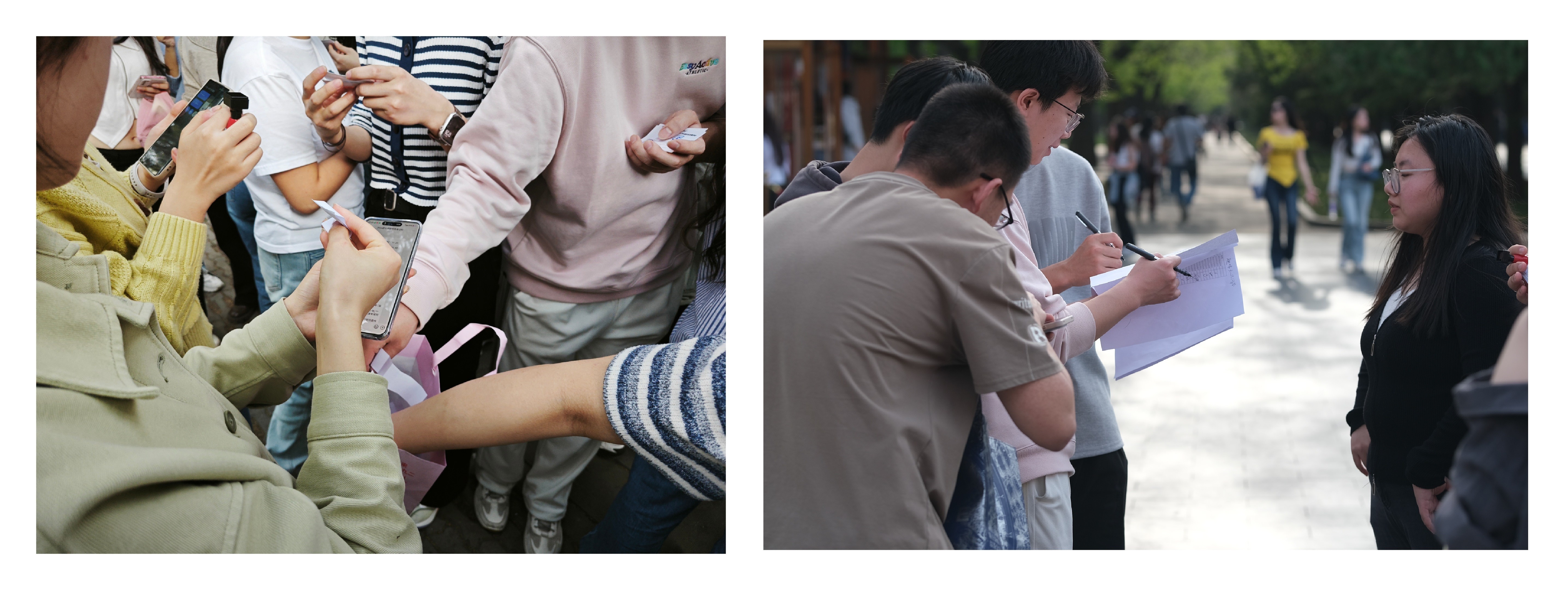 本次活动以打卡点知识问答的形式开展,共有百余人参加。活动现场,天坛公园的古朴建筑与生物医药科普氛围完美融合,五个精心设计的打卡点如同知识的灯塔,分布在公园的各个角落,等待着同学们前来探索。每个打卡点都围绕抗生素的不同知识要点设置了趣味问答环节,内容丰富且极具针对性。同学们手持活动卡片,穿梭于各个打卡点之间,在答题的过程中不断巩固和拓展自己的专业知识。特别是在活动路线上,“神秘药师”NPC的出没更是为本次活动增添了一抹神秘而有趣的色彩。当同学们偶遇他们时,一场隐藏的答题挑战悄然开启,成功完成隐藏挑战的同学可以获得“药师”专属荣誉印章。